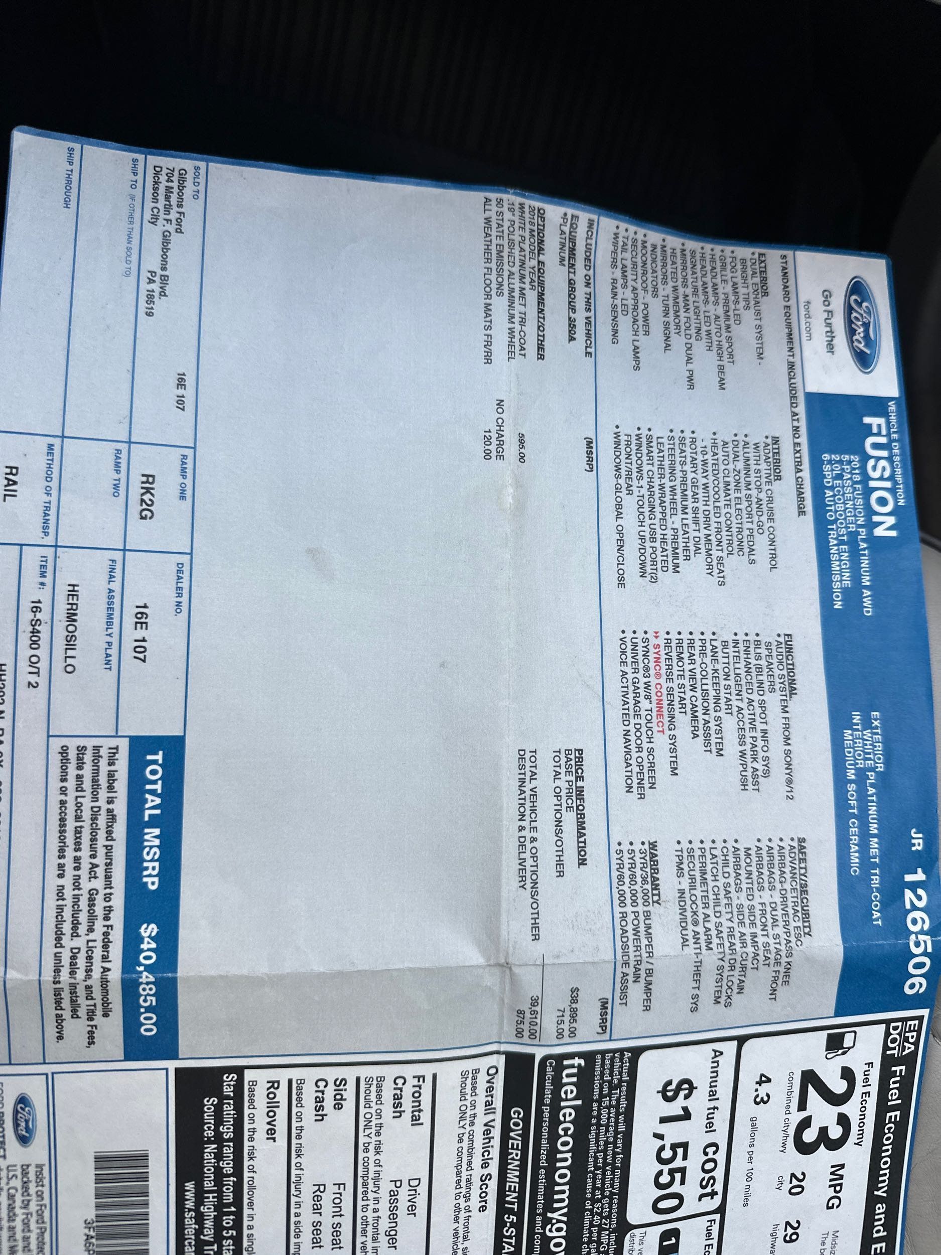 Front seatback upholstery: Leatherette front seatback upholstery
