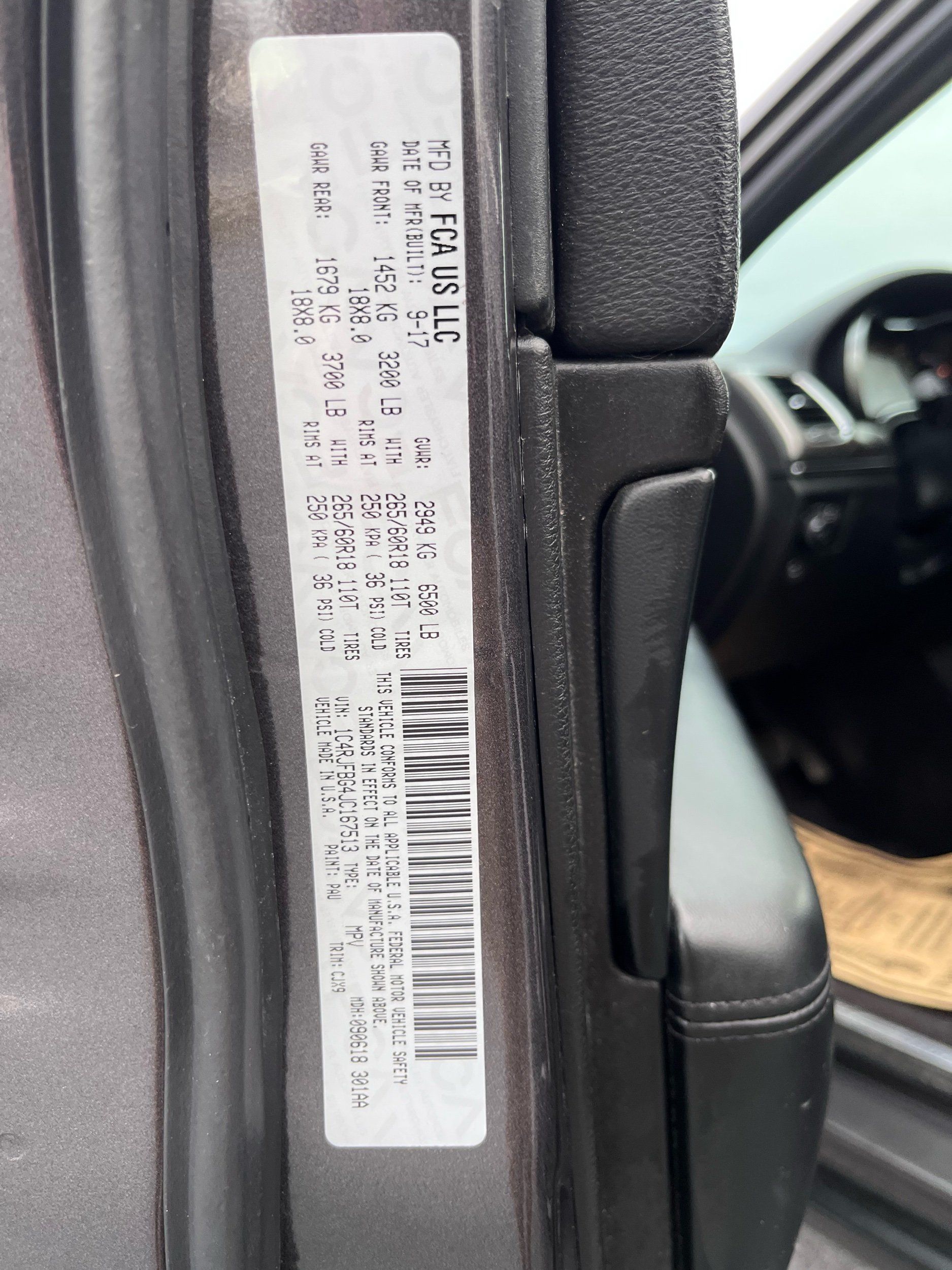 Front seatback upholstery: Plastic front seatback upholstery