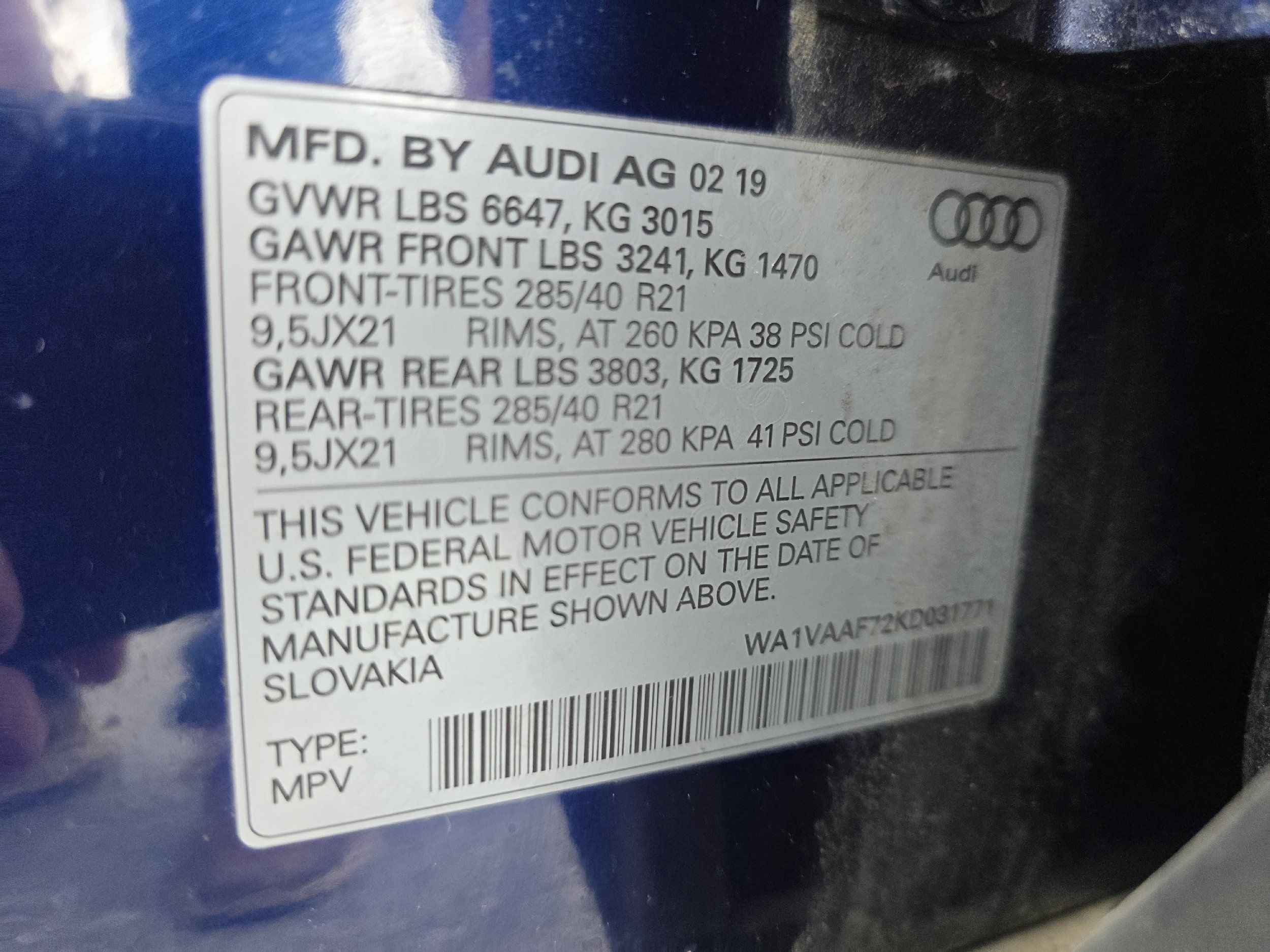 Cargo floor type: Carpet cargo area floor