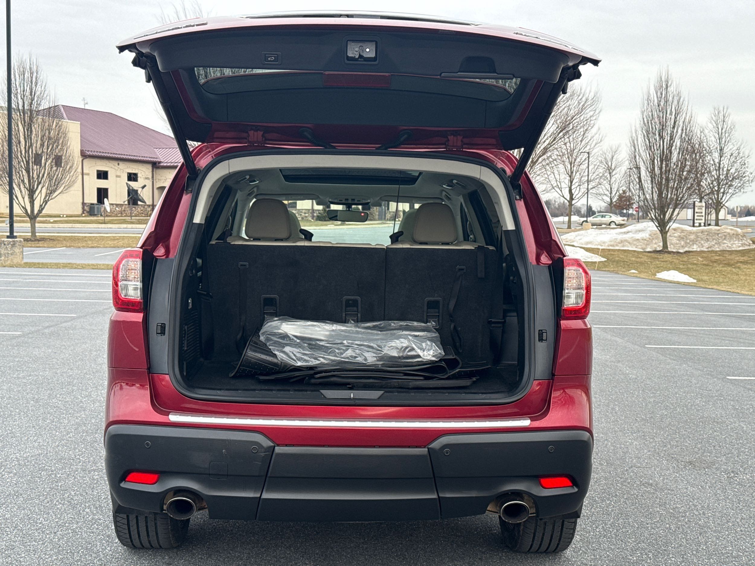 Third-row seatback upholstery: Carpet third-row seatback upholstery