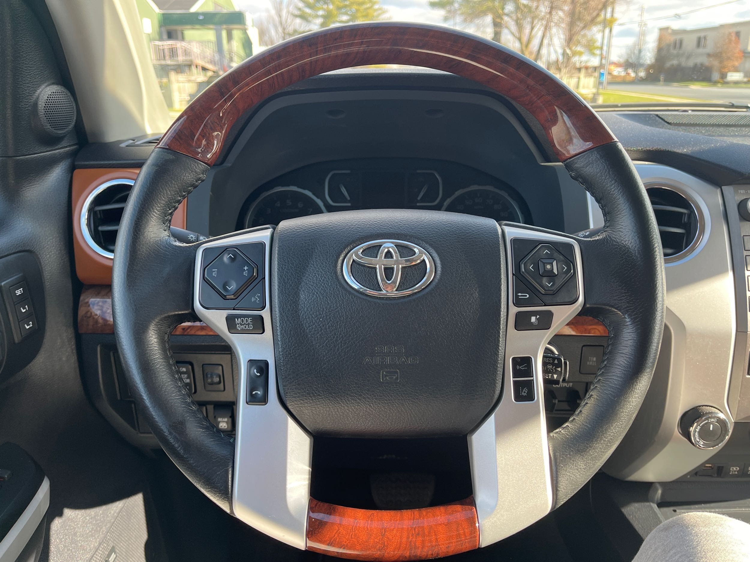 Steering wheel material: Leather and simulated wood steering wheel