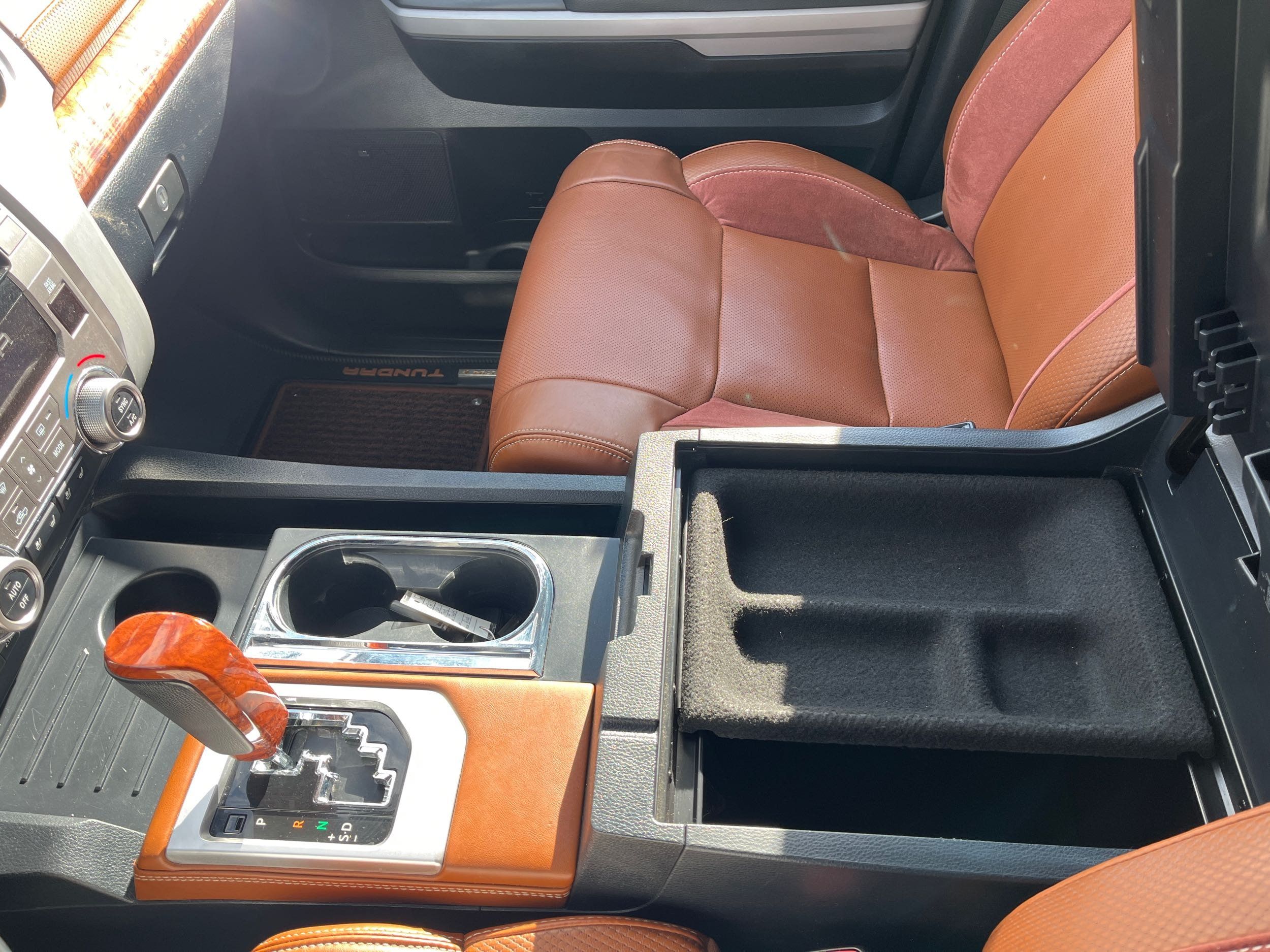 Floor console storage: Covered floor console storage