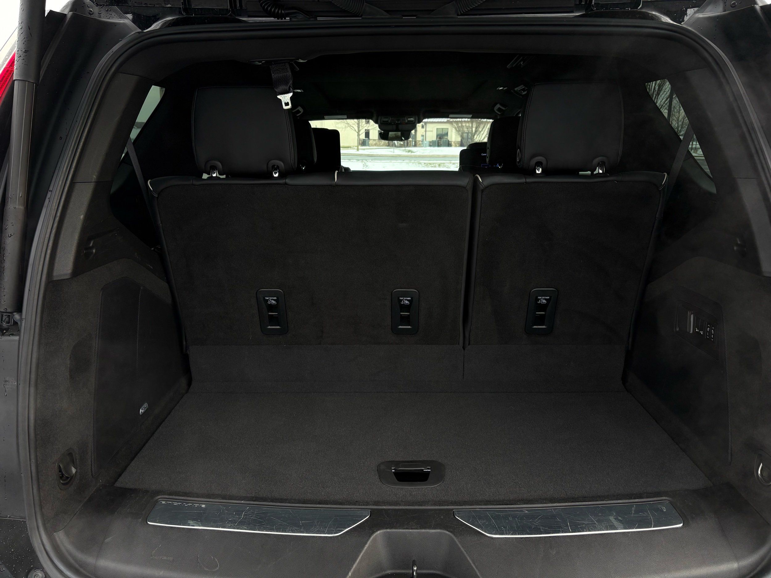 Third-row seatback upholstery: Carpet third-row seatback upholstery