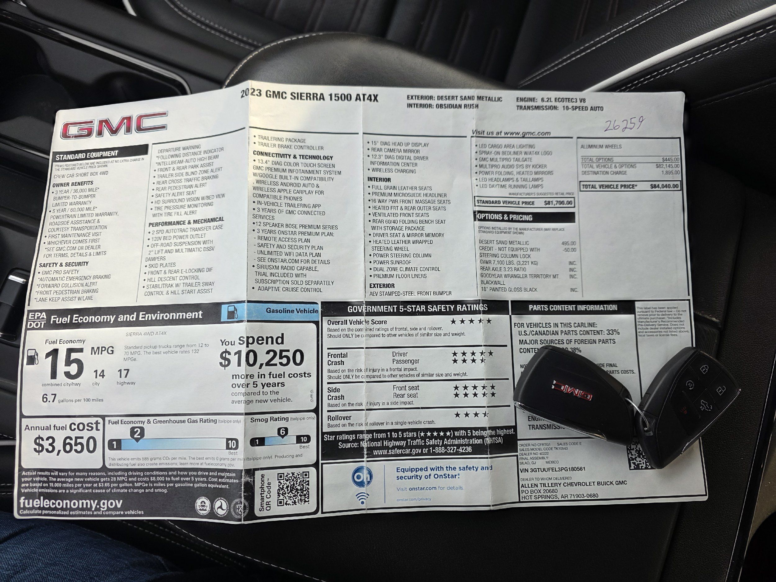 Front seatback upholstery: Plastic front seatback upholstery